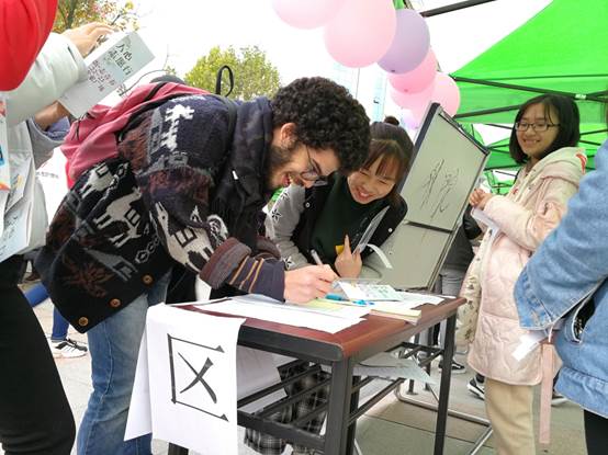 除此之外,服务体验区的环节也很受欢迎。代写情书,书籍互赠,都给同学们的学习与生活提供了一定的帮助。来自17级翻译的郝书梦体验完代写情书后说;“这个服务将我心里想要说的话以一种特别唯美的方式表达了出来,非常有创意,感觉很特别!”