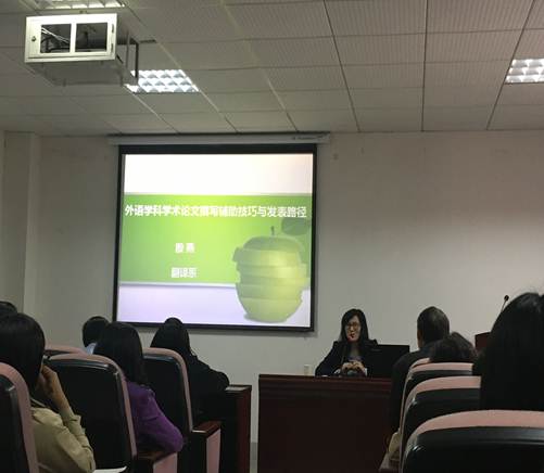 本次讲座的灵感来源于殷燕教授的个人求学经历,并结合现实中师生面对科研压力寻找突破口的需求。殷燕教授主要将外语科研论文总结为“写-投-写”;其中涉及选题方式、文献获取途径并分析和撰写论文、成果投稿发表、实时跟踪论文发表情况与分享交流这四个主要方面。在选题之前殷教授展示了自己在2016年至2017年间发表论文的基本情况,她总结到自己发表的成果正是遵循以上四个方针。对于论文而言,选题是写作的起点,起点做好便是成功的一半;学者可以通过不同途径获得选题;在讲座中殷教授尤其强调了下面四个来源的重要性:互联网时代,学会利用分享网络中的国内外文献,尤为关键;参加学术会议,与专家、同行交流,不仅信息量大,还能了解学科最前沿的内容,把握发展动态;发表论文符合国家战略需求,能起到指挥棒作用;部分学者常常会忽视新书评介,实际上它会给予学者最新、最前沿的学术方向。但主要还是从各方面提高学术敏感性,将四个来源合一,胜算才会变大,再结合学者个人研究兴趣,会使论文完美呈现。工欲善其事必先利其器,文献获取无外乎巧用必要的辅助技巧和科研工具,殷教授无私地提供给大家获取文献的网址、相关截图,耐心地展示如何利用这些相关的工具、软件,这些宝贵的资料可以省去在场的各位师生平时寻找文献的不少时间。即便论文完成,仍需要学者巧妙选择投稿方式、刊物;为了增加投稿率,要重视投稿花费时间成本,选择适合自己现实需求的方式,进行一稿多投、不能被动等待。同时,投稿要增加“目的期刊”的引用文献,以便增加来自目的期刊编辑、审稿人的好感,获取同等条件下被选中的几率。论文发表后,并不代表研究的结束,恰恰是另一个拟题的开始,因此有必要实时更进,掌握最新发展动向。